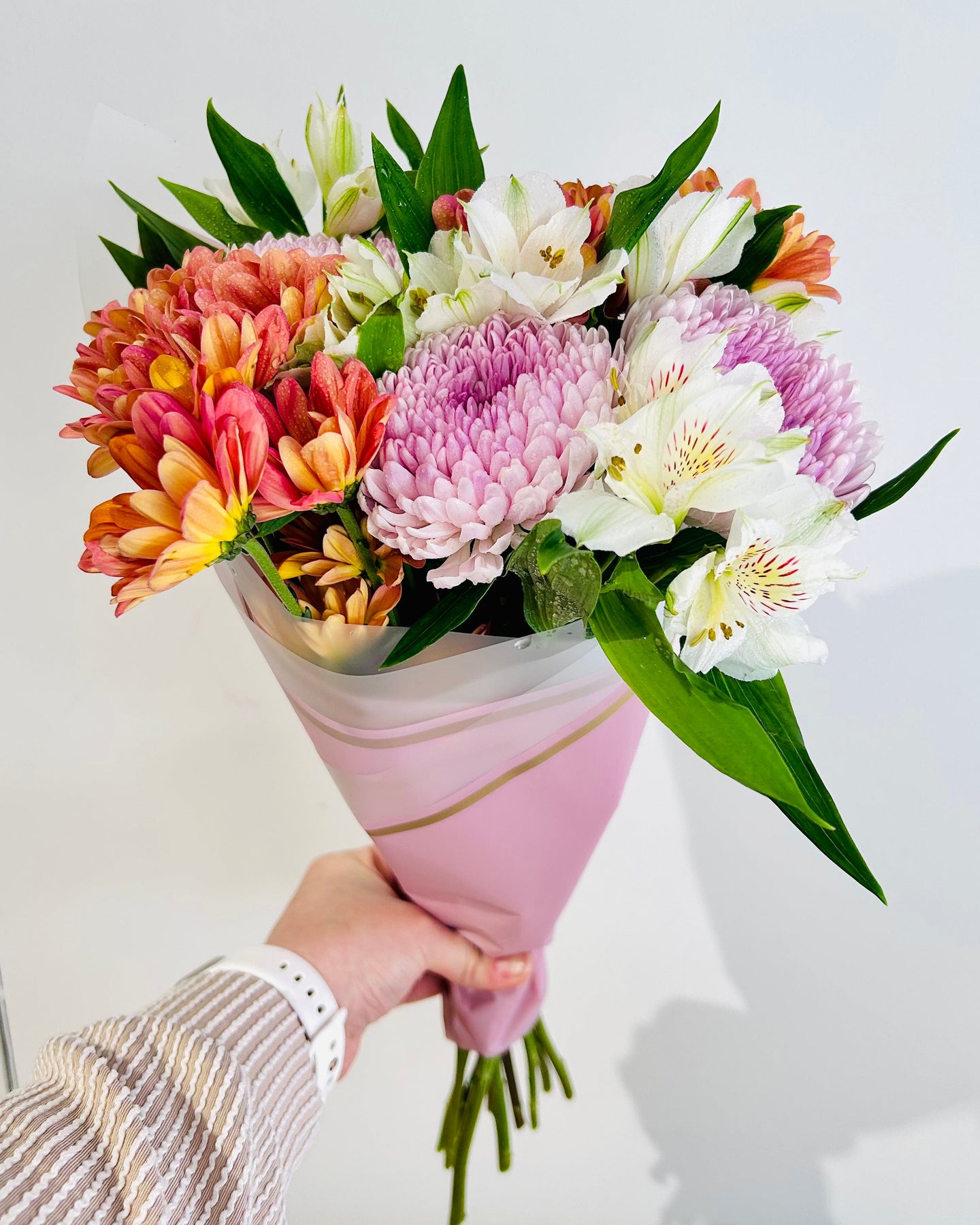 Celebrate their big moment with our Spotlight Bouquet! This medium-sized arrangement features a joyful mix of spring-colored poms, delicate alstroemeria, and bold cremones, all wrapped in charming spring floral paper. Bright, full, and full of texture, it’s the perfect way to applaud their performance and make them feel extra special after the show.